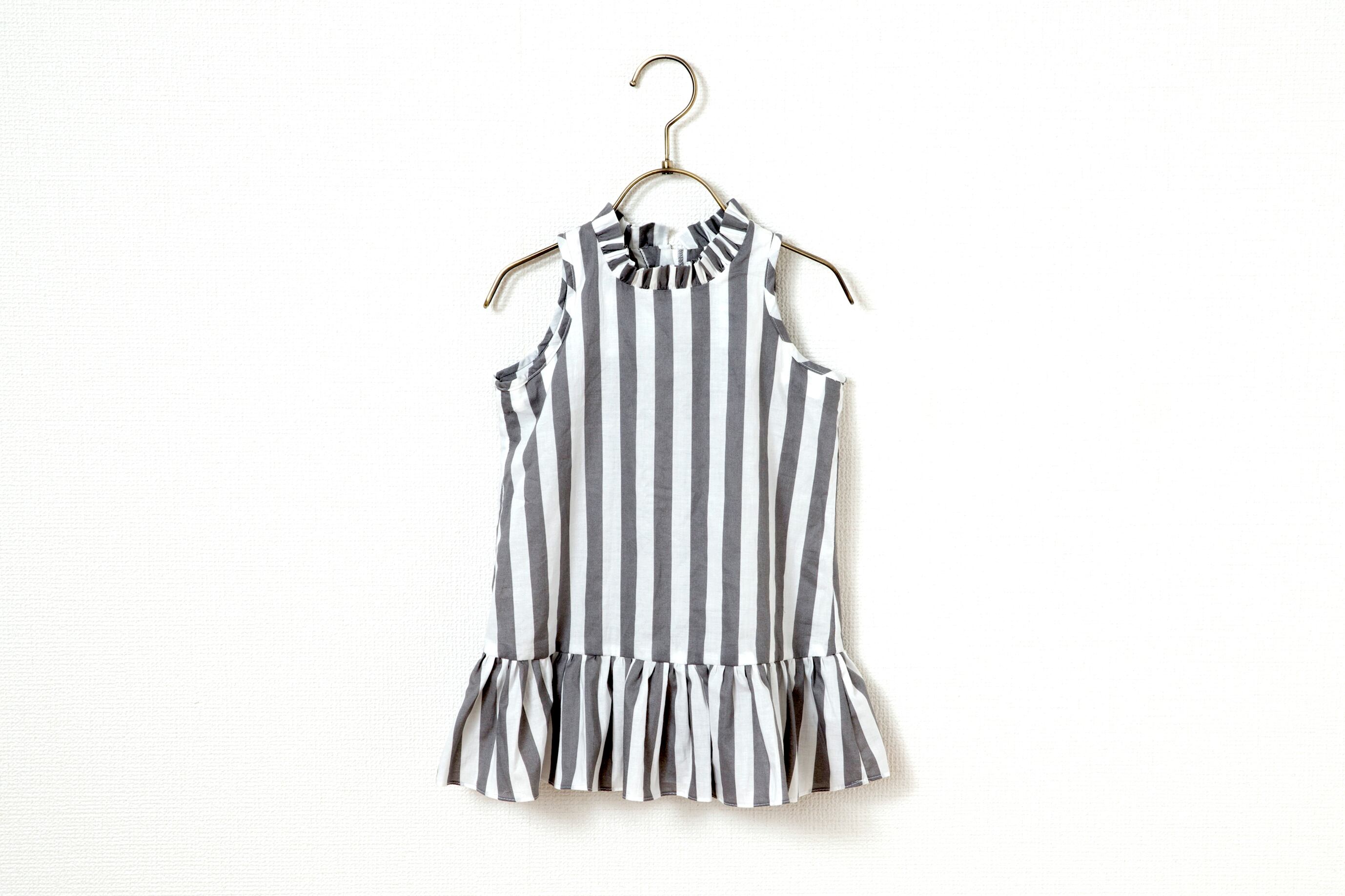 グレイ×ホワイトストライプはコットン100%素材。