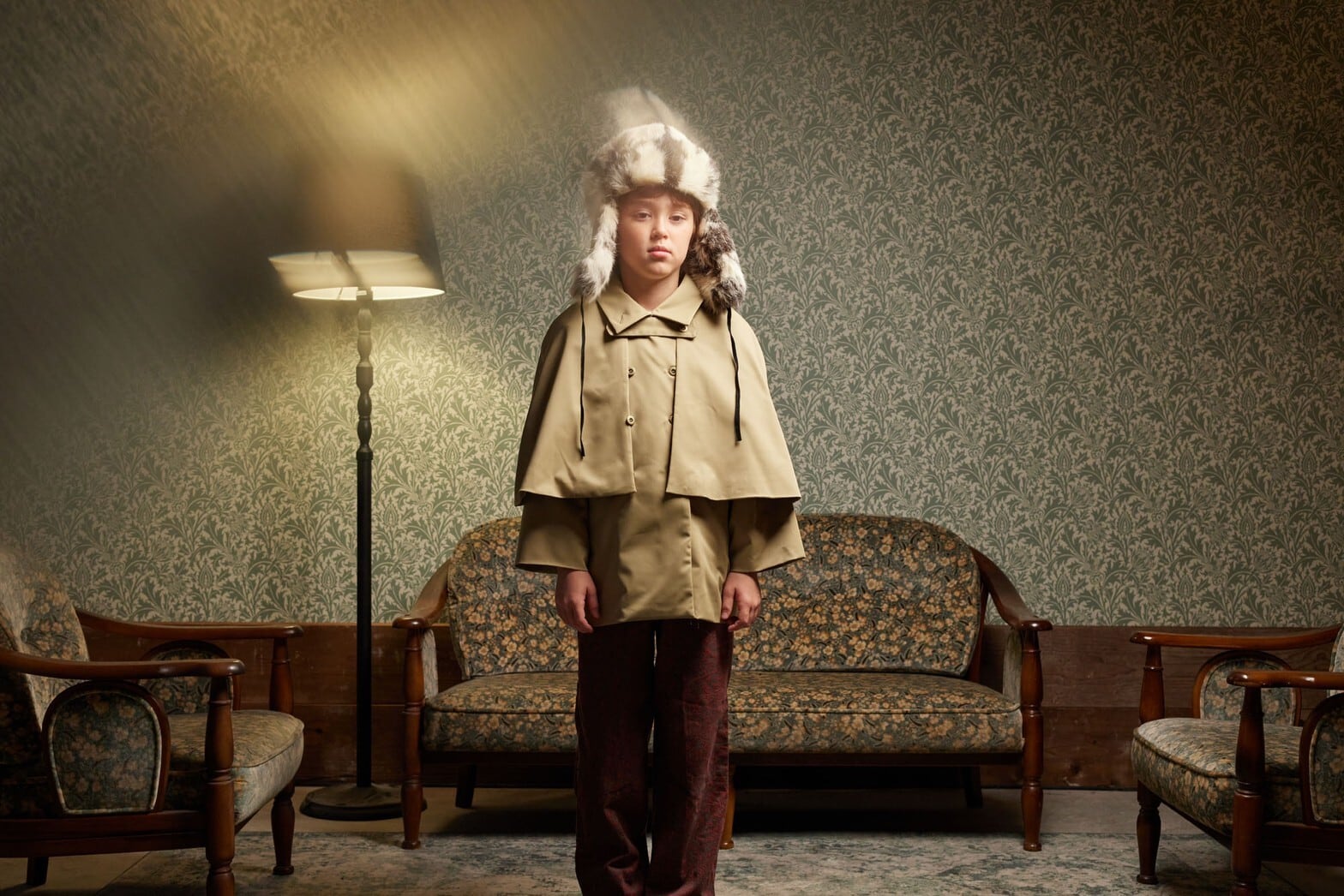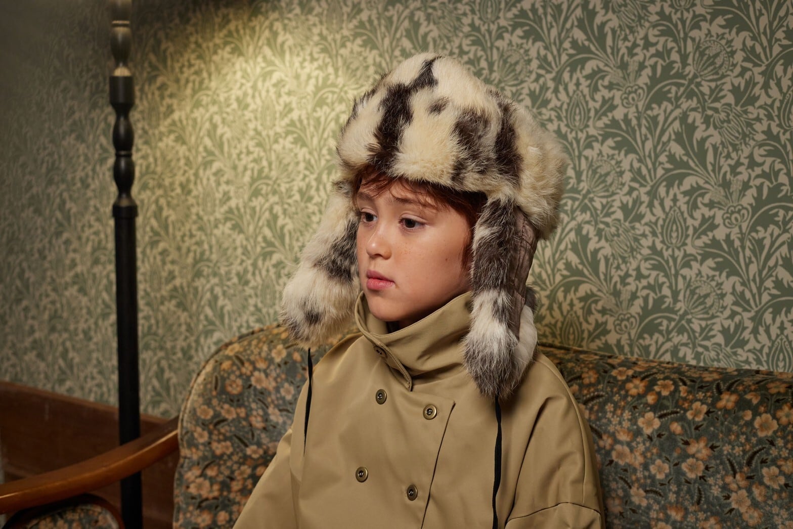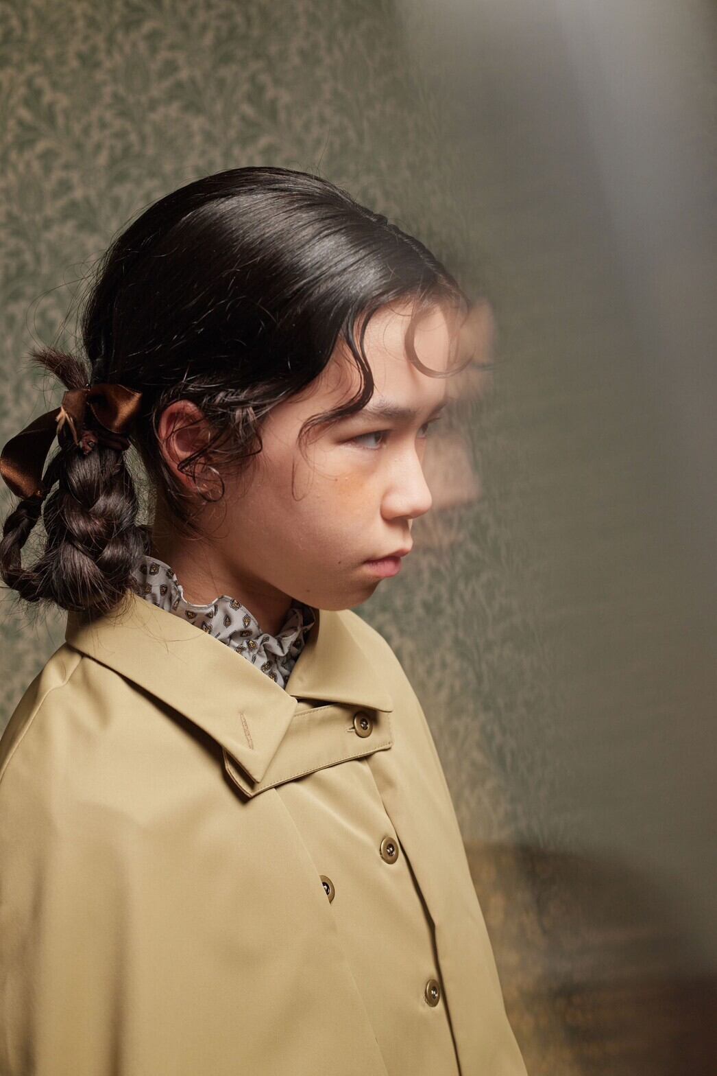 トレンチコートとケープを合わせたようなインヴァネスコート。もともとはスコットランドで雨の時にもバグパイプを守れるように生まれたという雨除けのためのコートなのですが、今回は雨除けではなく、お子様仕様に丈を短くしました。TRNKAの洋服は袖が大きなものも多いので、中に着た袖がもたつかないように、コートの袖はあえて太めにしています。またはケープのみでも。襟の使用は、オープンカラー、ステンカラー、スタンドカラーの3way。