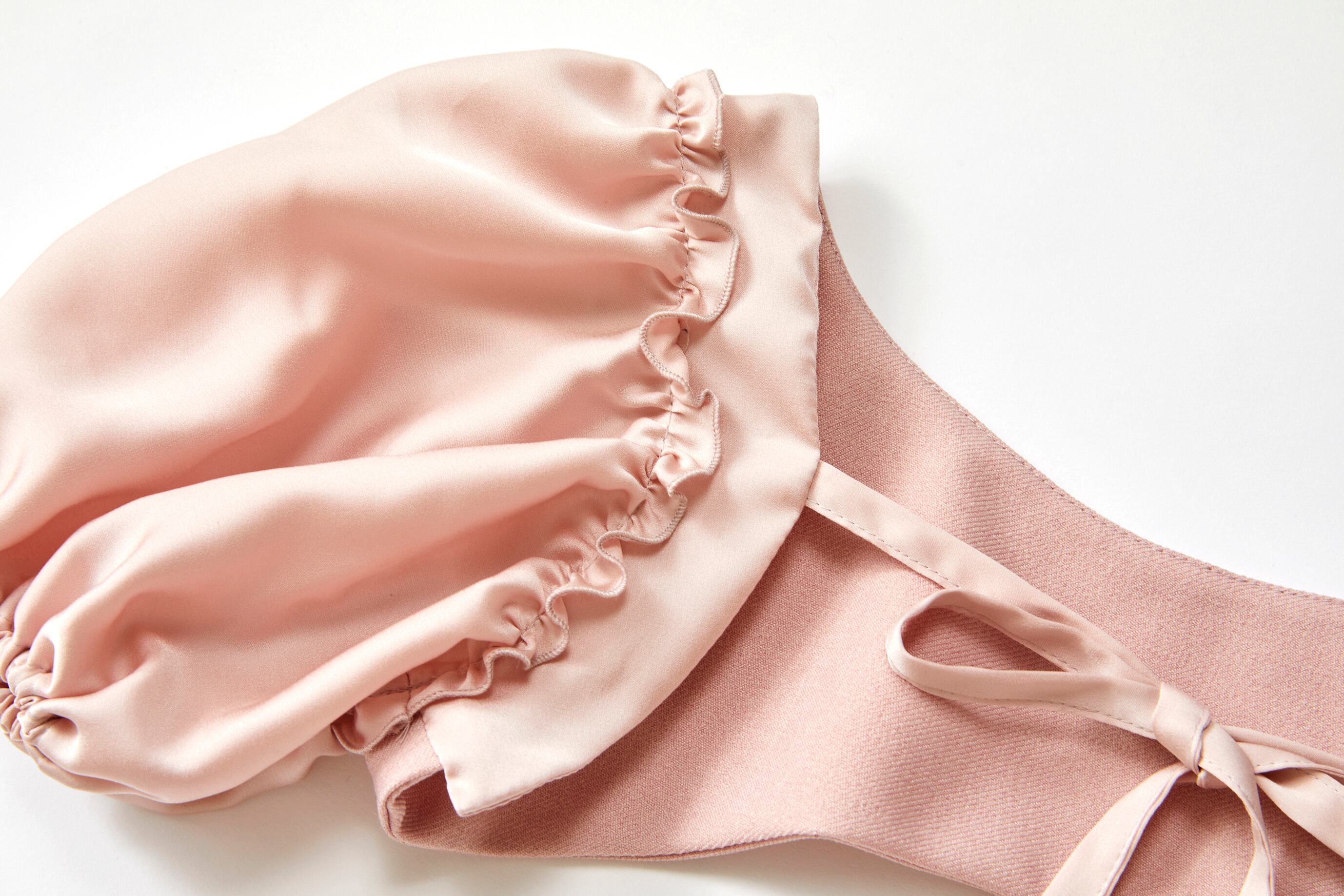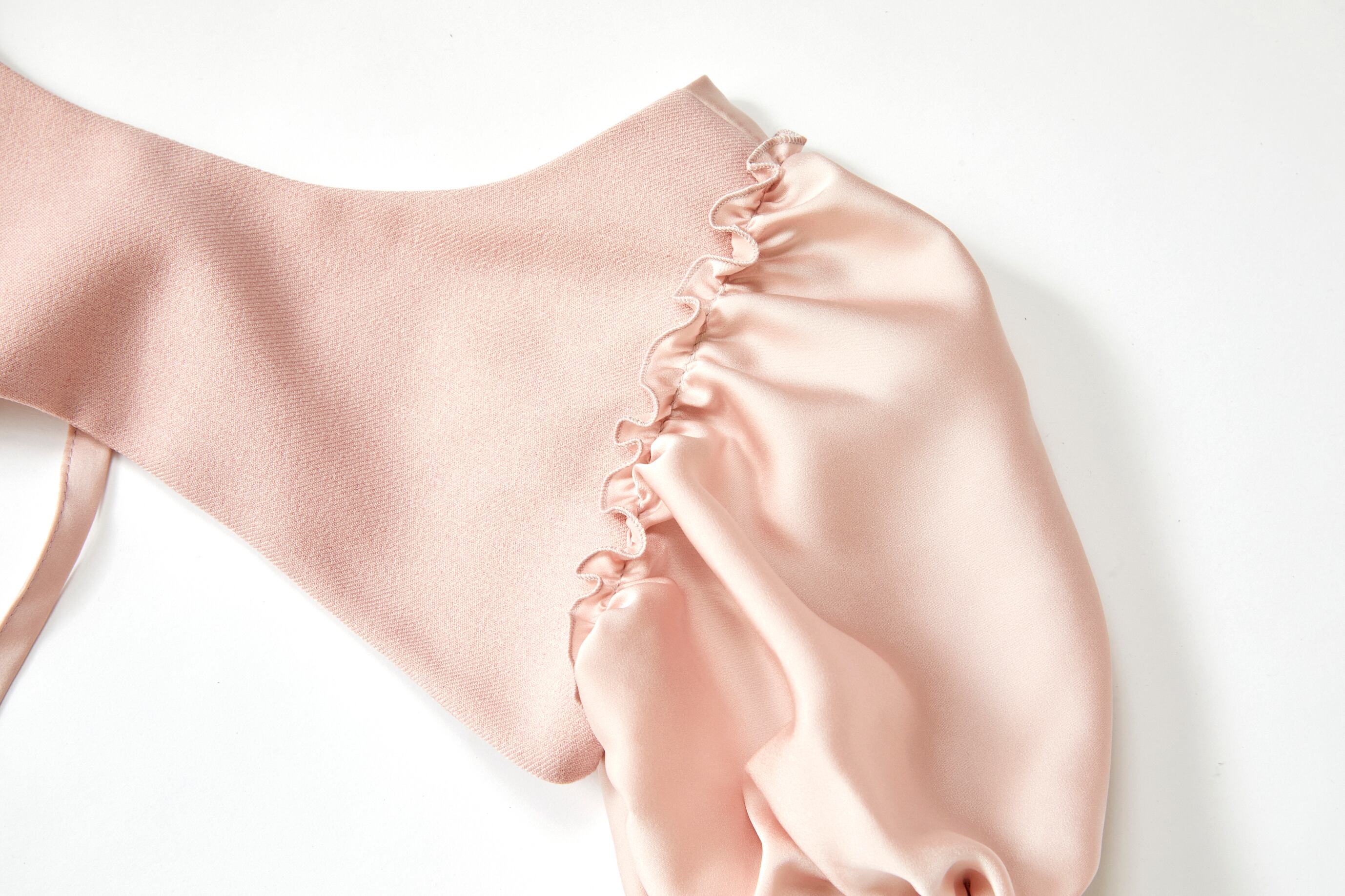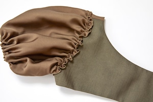 付け袖感覚のボレロです。光沢のある生地で、ガーリーでドレッシーにも、カジュアルに合わせてスパイスとしても合わせられます。通年を通して使えるアイテム。同生地にLong gathered SKあり。セットアップにするとワンピースのように見えます。