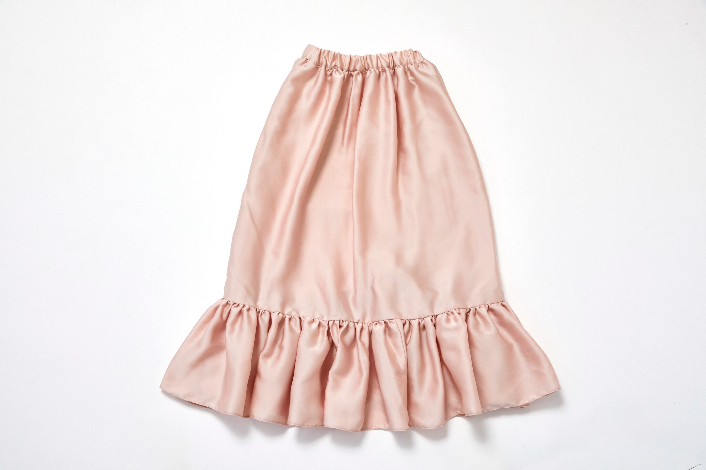 ドレッシーにもカジュアルにも使えるロングスカート。通年を通して使えるアイテム。同生地にSleeve ribbonあり。セットアップにするとワンピースのように見えます。